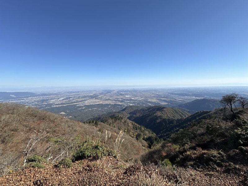 眼下には街並みが広がり、遠くには別の山々が連なる。